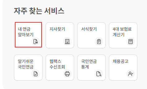 2) 메인화면 우측에 있는 자주 찾는 서비스 → 내 연금 알아보기를 찾아서 접속합니다.