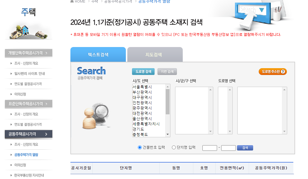 - 사이트 접속: 부동산 공시가격 알리미 사이트에 접속합니다.