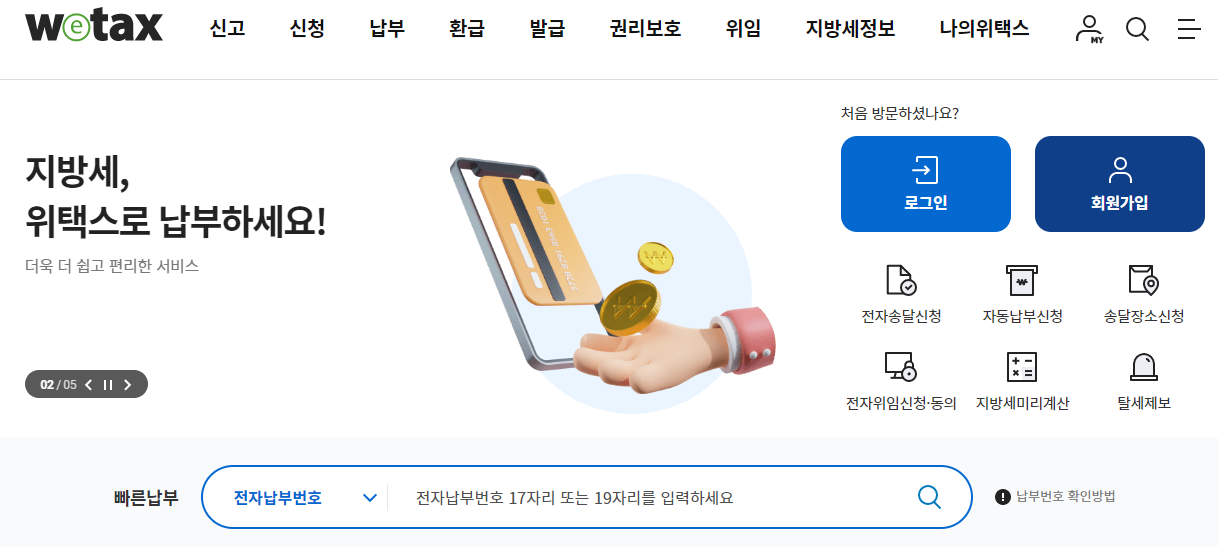 위택스 홈페이지는 납세자 정보가 있는 개인이라면 회원가입 없이도 비회원 로그인으로 위택스 서비스를 이용하실 수 있습니다.