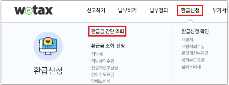 위택스 홈페이지 환급 신청방법