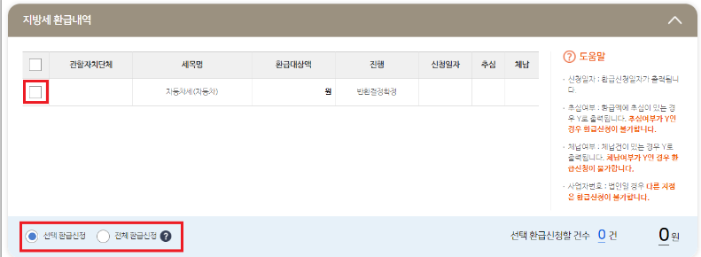 환급금 수령 전까지 신청 상태를 자치단체의 세무사무소에서 확인하세요.