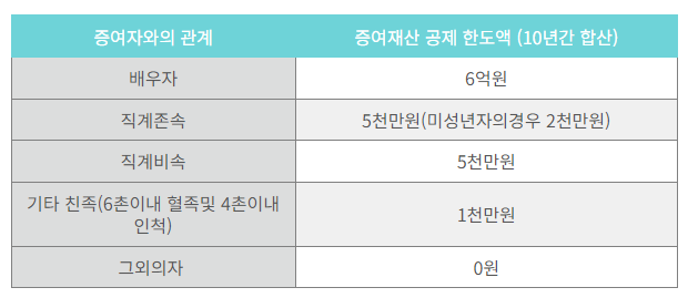 가족 간의 증여는 일정 한도 내에서 공제 혜택을 받을 수 있습니다. 10년간 누계 한도로 적용됩니다.