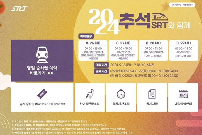 2024년 추석 열차 예매는 많은 사람들이 동시에 접근하는 만큼, 빠른 예매와 결제가 중요합니다. 사전 준비와 유의사항을 잘 숙지하여 예매에 성공하시길 바랍니다.