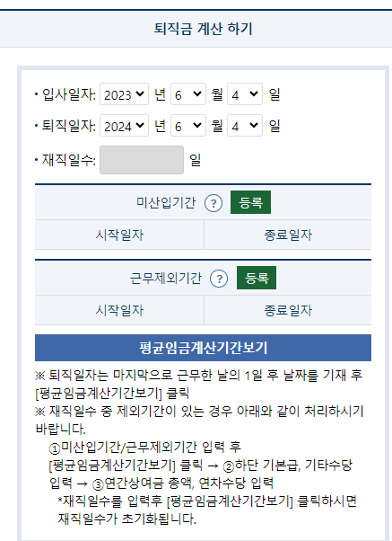 가장 중요한 것은 평균임금을 계산하는 것이 퇴직금을 산정하는데 가장 중요한 요소입니다. 여러모로 퇴직금을 계산하시는 데에 복잡하실 수 있으니 퇴직금 계산기를 활용하시는 것이 좋습니다.