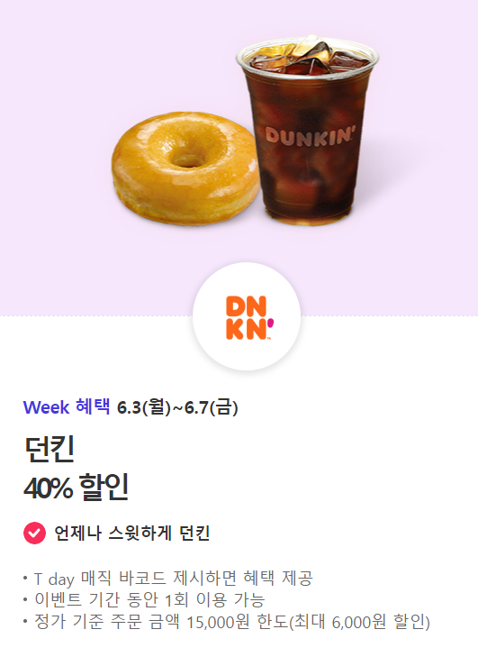 2024년 6월 T day 6월 3일~6월 7일까지 1,000원당 500원 할인 혜택을 꼭 챙겨야 합니다.